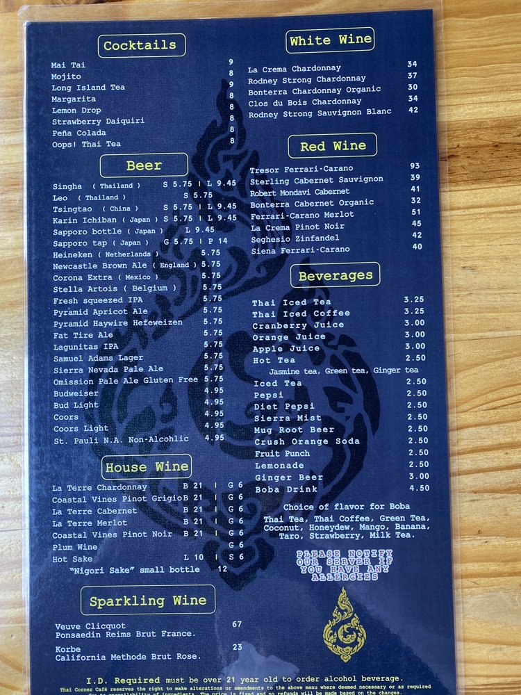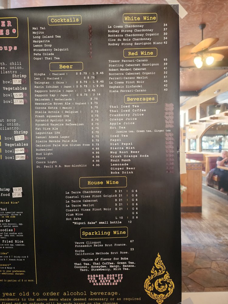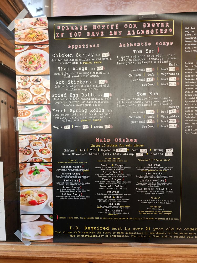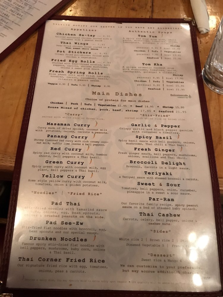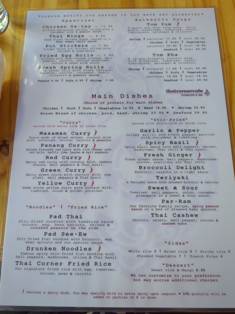 Introducing Thai Corner Cafe, a Thai-Cocktail Bar located in Reno, NV. This vibrant restaurant offers a variety of amenities such as reservations, delivery, and takeout, making it convenient for diners. The menu boasts appetizers like Chicken Satay and Fresh Spring Rolls, alongside authentic soups like Shrimp Tom Yum and Coconut Curries such as Masaman and Panang. Customers rave about the Pad Thai and Fried Rice, praising the authentic flavors and excellent service. With high recommendations from loyal patrons, Thai Corner Cafe stands out for its delicious dishes, friendly staff, and clean atmosphere. Whether you're a Thai cuisine enthusiast or a newcomer, this restaurant promises a satisfying dining experience.